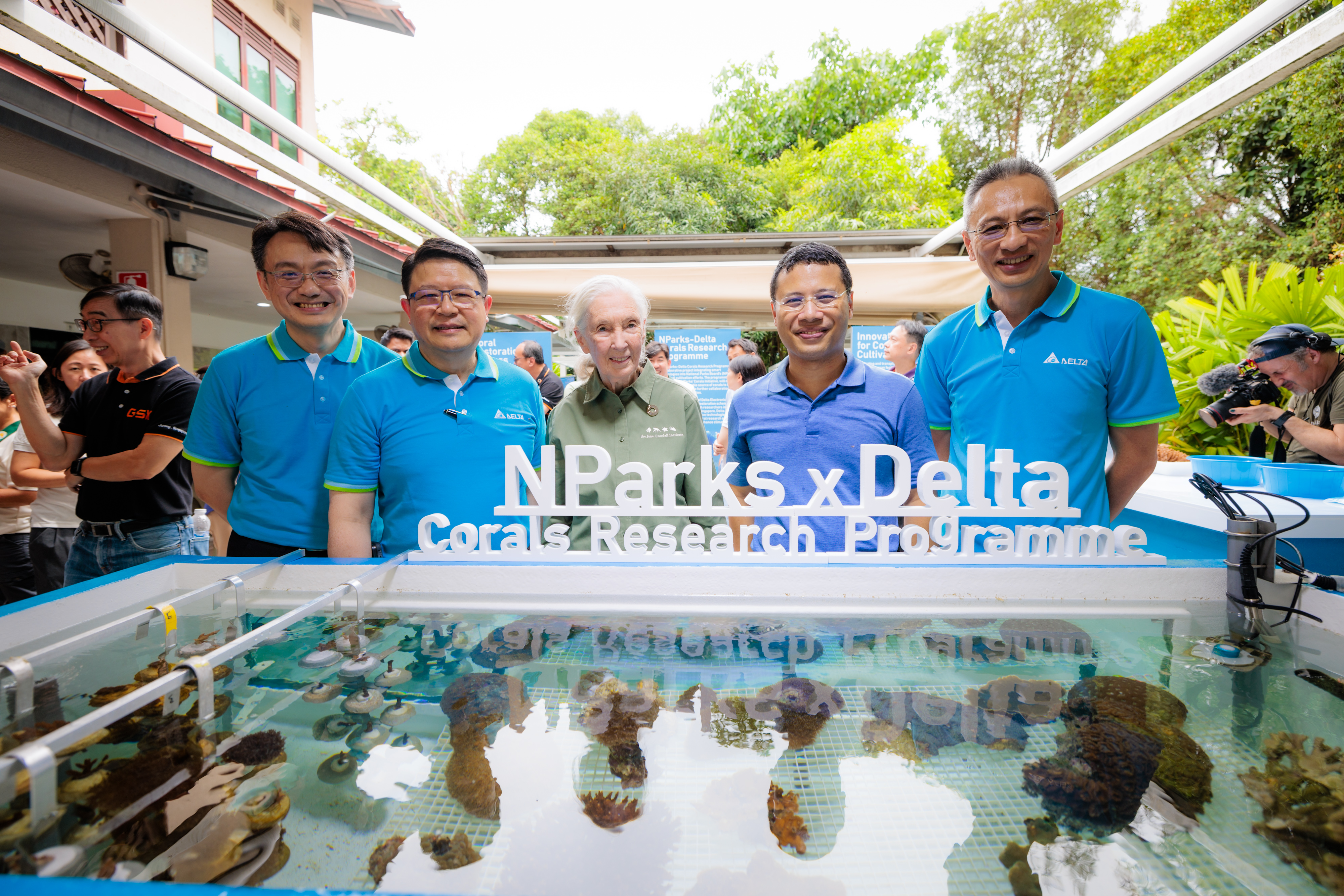 ''All ecosystems are intricately connected, from land to sea, from corals to humanity,'' remarked Dr. Jane Goodall, now 90 years old, after attending the launch event on St. John’s Island alongside Minister Lee, where Delta’s engineers presented the smart aquaculture system. She also joined Mr. Victor Cheng, a Director of the Delta Foundation, in planting the first batch of corals at the coral culture facility. In this heartfelt moment, she gave a blessing kiss to a coral seedling, wishing it a successful growth and a safe return to its natural habitat.