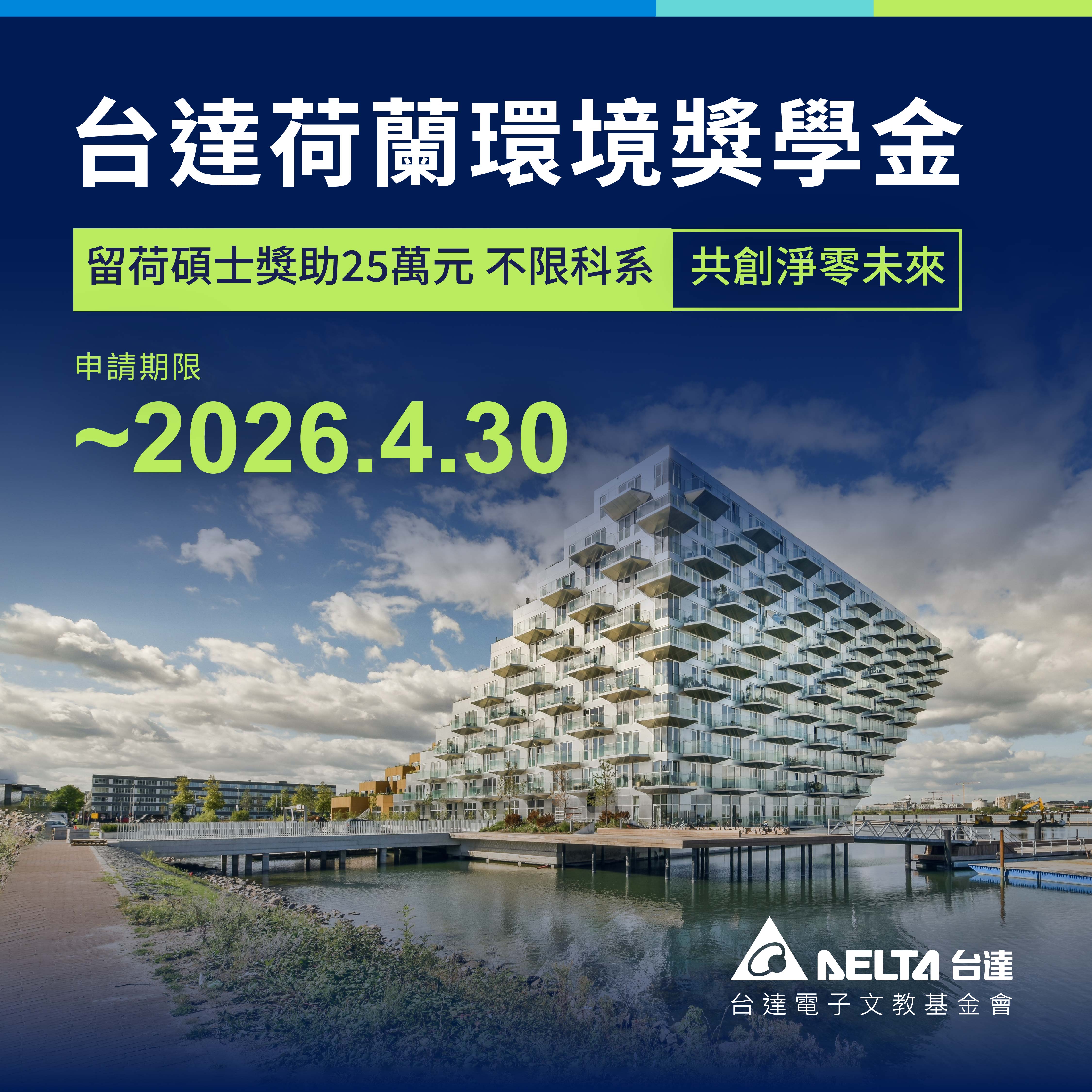 檔案下載: 2026台達荷蘭環境獎學金徵件辦法 、 2026台達荷蘭環境獎學金申請 QA
